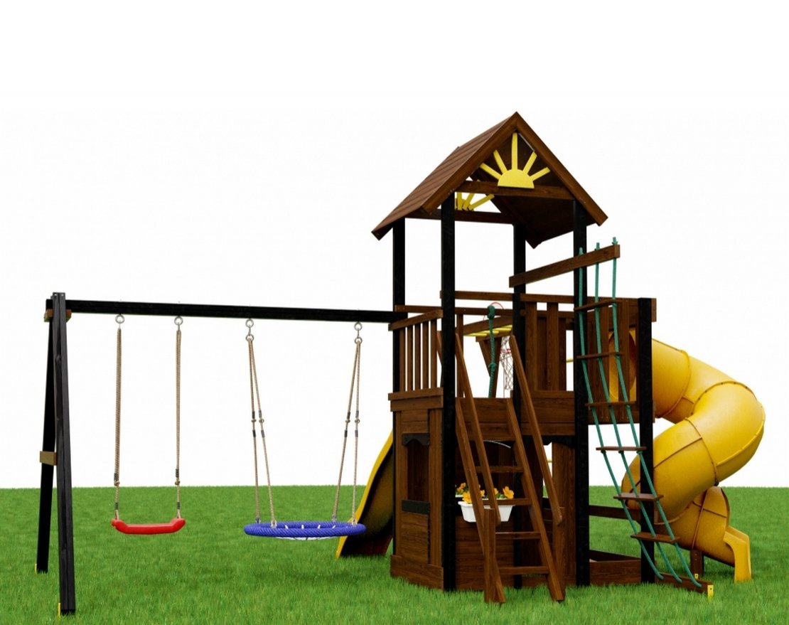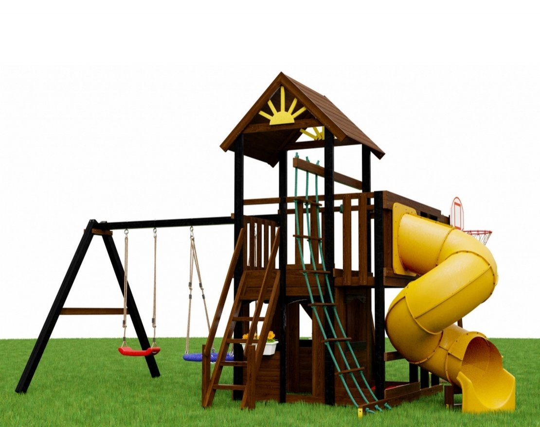- Игровая башня с деревянной крышей и «Солнышком»