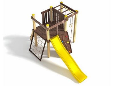 Игровой комплекс представляет собой игровую башню с множеством игровых элементов. Эта небольшая модель может использоваться как на улице, так и внутри помещения.