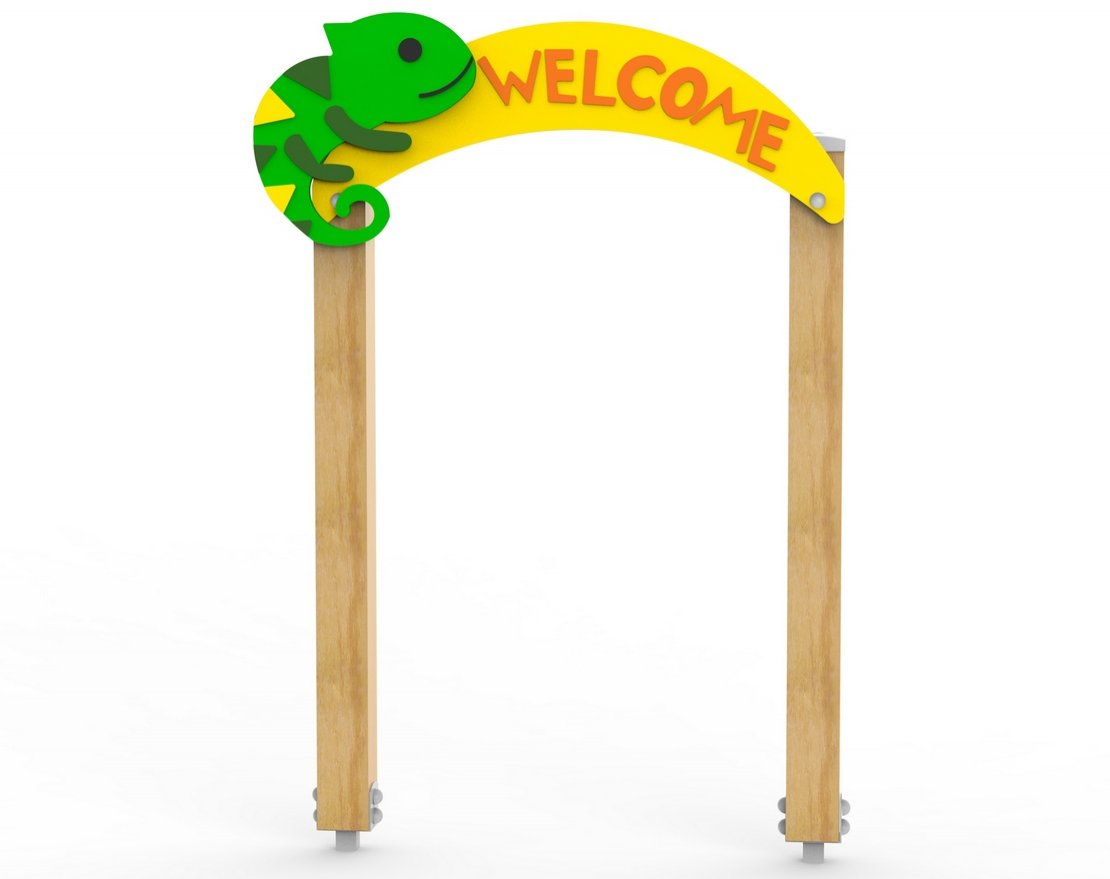 Арка Монте 1 состоит из двух опорных стоек и декоративной панели. Арка устанавливается при входе на детскую площадку.