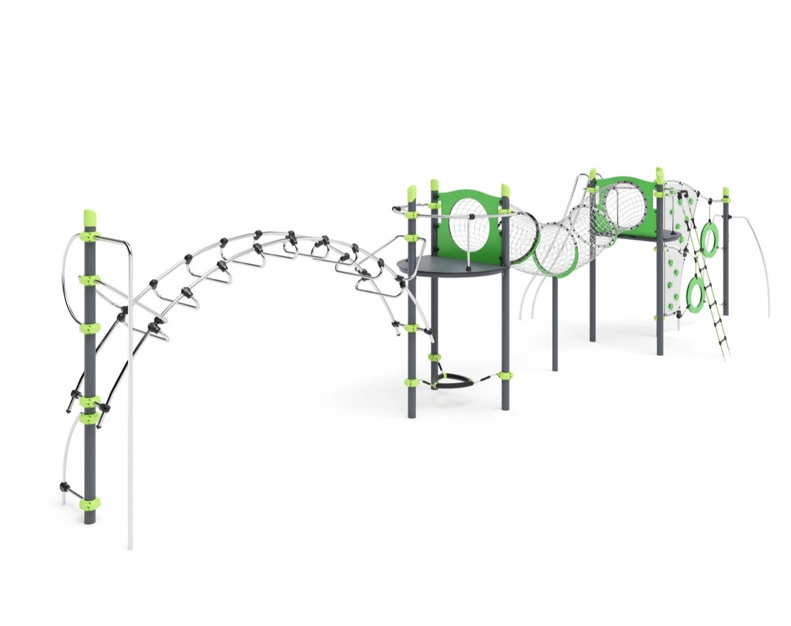 Dynamix помогает развивать координацию движений, чувство баланса и равновесия и преодолевать чувство страха высоты. Подходит для установки на уличных площадках.