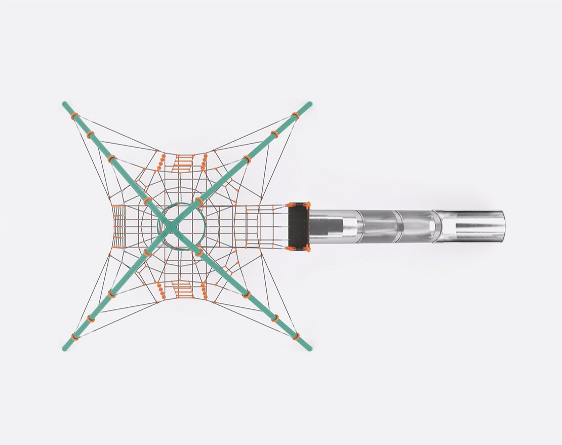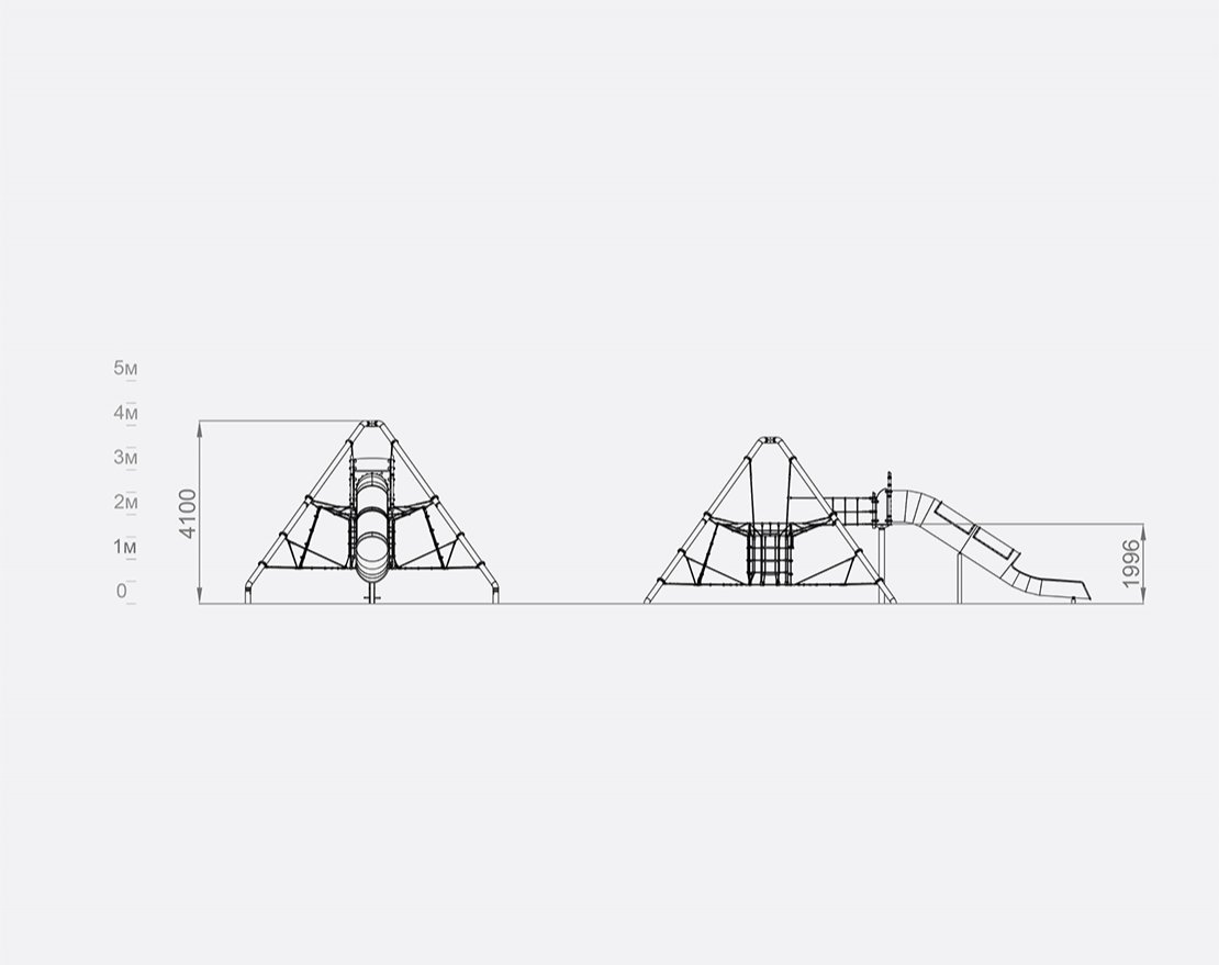 Представляет собой конструкцию, состоящую из металлического каркаса, канатных сеток, лестниц и полузакрытой металлической горки. Рассчитана для физического развития, гибкости и координации.