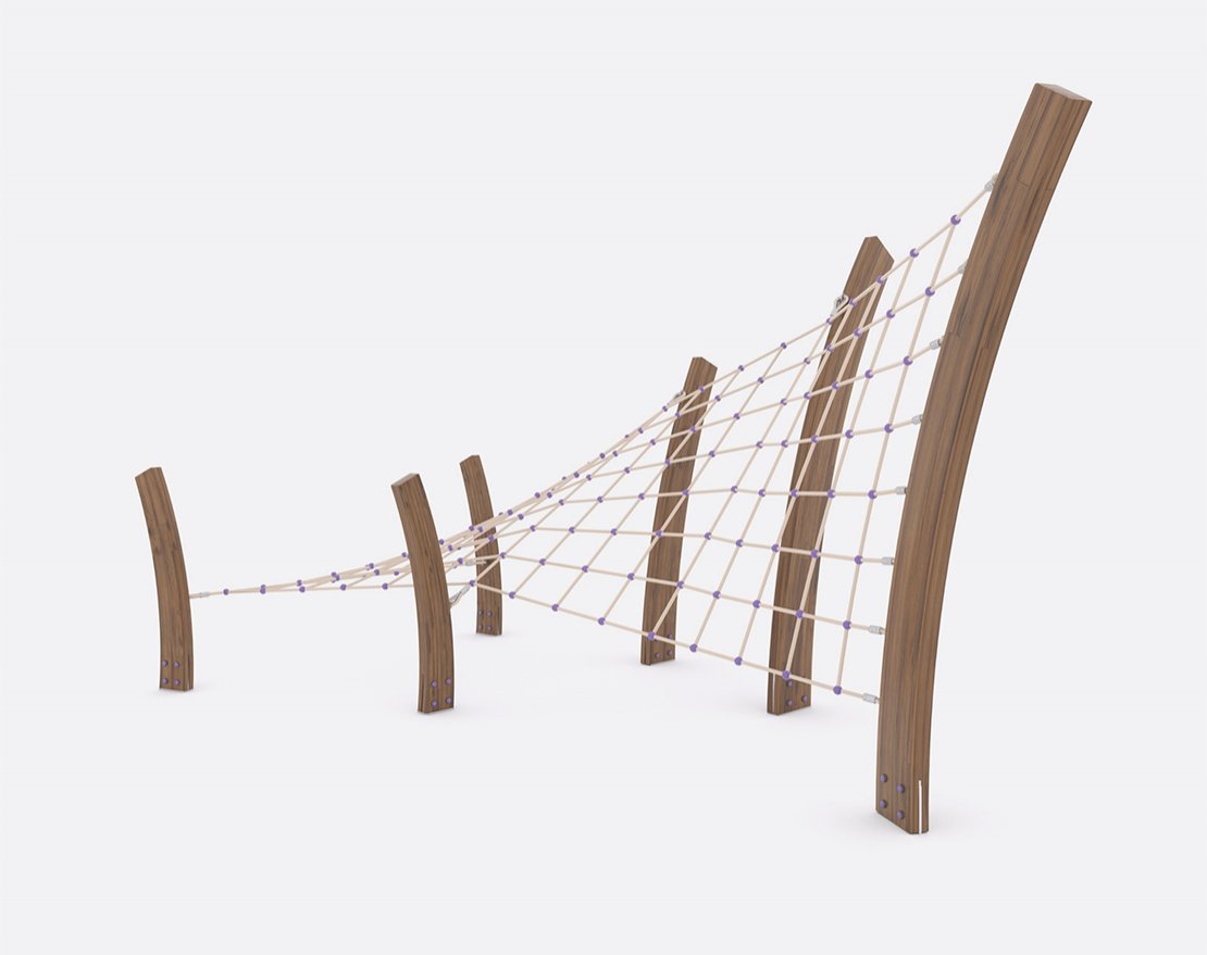 Состоит из опорных стоек и канатной сетки. Для большего комфорта, сетка оснащена пластиковыми уступами.