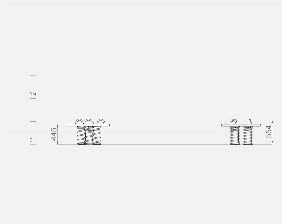 Состоит из з-х металлических пружин, на которую фиксируется перекладина. Для большей безопасности, в пружины устанавливаются межвитковые вставки и помещается конвейерная лента. Также конструкция оснащена металлическими ручками для хвата руками.