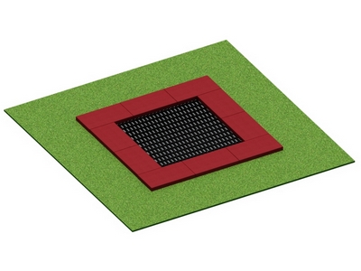 Корпус – сборная конструкция, состоящая из четырех бортов, изготовленных из стали толщиной 3мм. Борта окрашены порошковой краской в заводских условиях. Борта соединены между собой болтовым соединением. Габарит корпуса 1340х1340х400 мм, расстояние от края батута до прыжкового полотна 300мм.