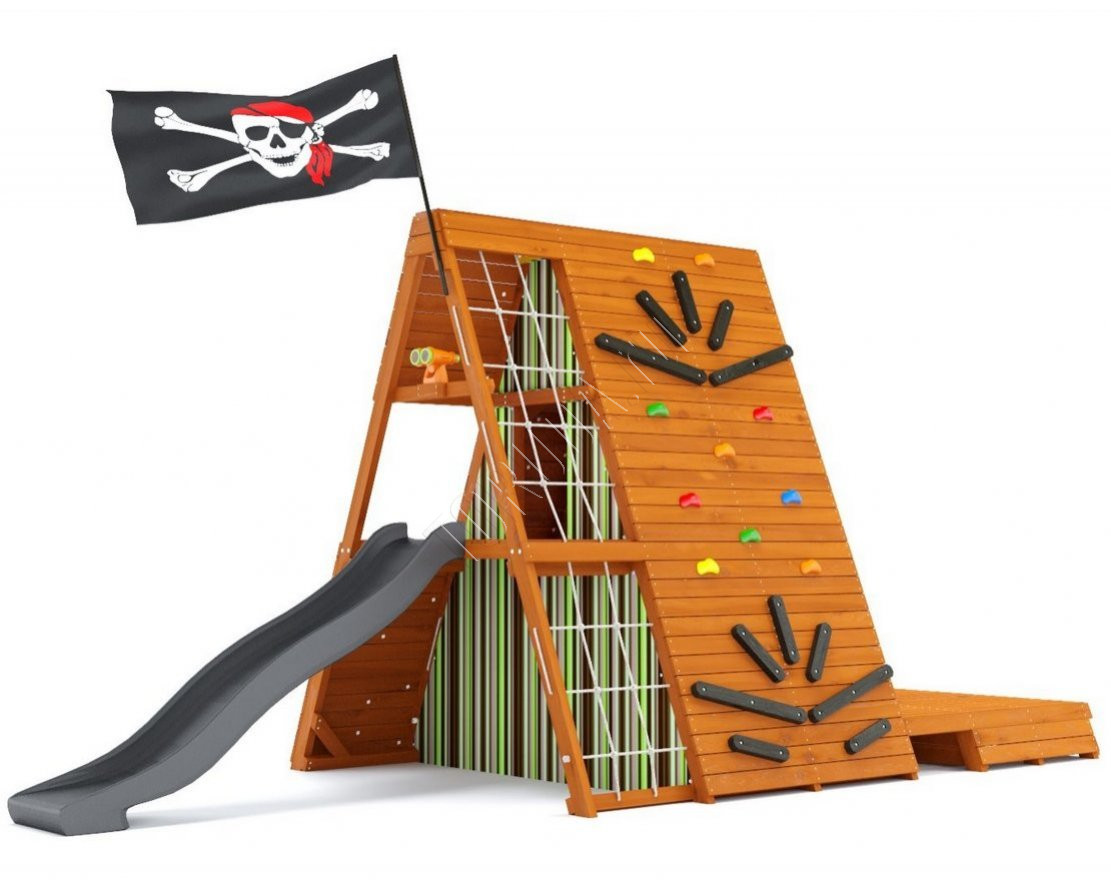 - Дизайнерский скалодром с пластиковыми и деревянными зацепами, многосекционный скалодром с сеткой и зацепапами, разноуровневые гладиаторские сетки и сетка-лазалка, бинокль и меловая доска – всё это позволит детям в полной мере ощутить радость движения и активной игры.