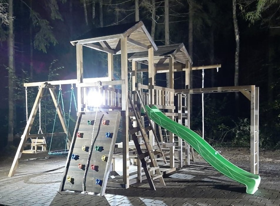 Надежная и долговечная детская игровая - спортивная конструкция из древесины сибирской лиственницы для детской площадки в дачных домовладениях, загородных участках и поместьях (только частные владения, для личного пользования), поможет организовать интересный досуг детям в условиях загородной жизни и отлично сочетается с природным ландшафтом. Конструкция не предназначена для установки и эксплуатации в зонах общего пользования: городские дворы, городские парки, общедоступные детские игровые площадки.