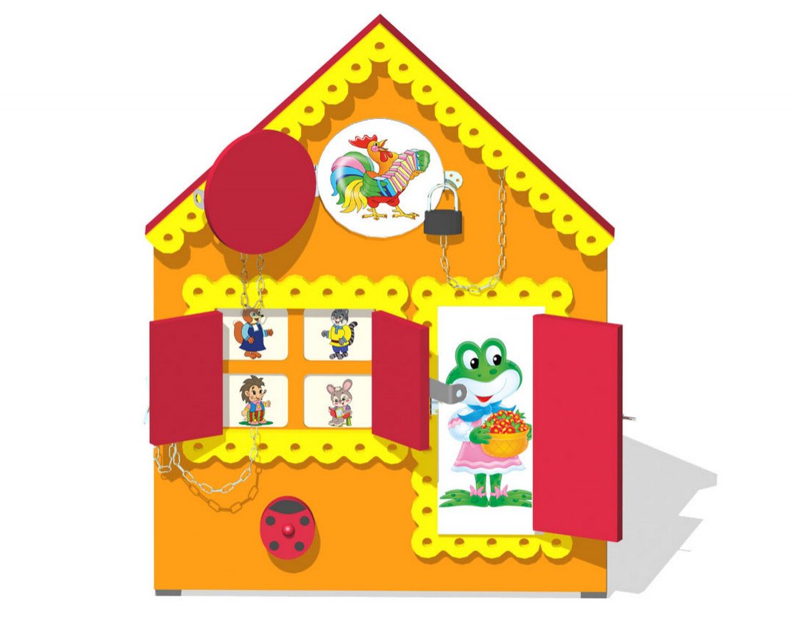 Игровой щит предназначен для дополнения прогулочной площадки детского сада. Это изделие насыщено интерактивными элементами, позволяющими развивать мелкую моторику.