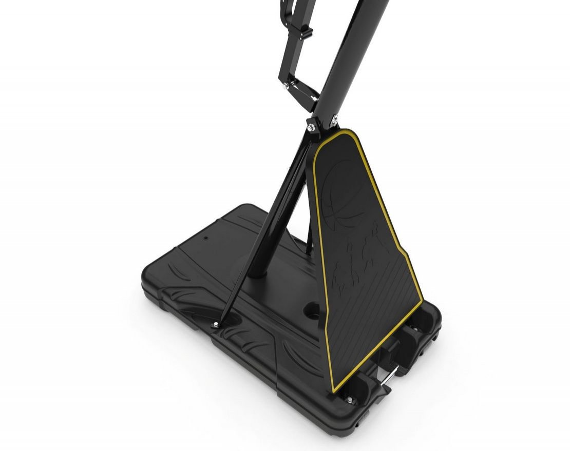 Портативная баскетбольная стойка совмещает в себе мобильность и обеспечивает отскок мяча, как на профессиональной площадке. Благодаря усиленной конструкции удалось добиться увеличенного вылета щита, при сохранении компактности размещения. Он регулируется по высоте в диапазоне от 230 до 305 см, имеет защитное покрытие Poly Pade в нижней части. В основание стойки (объем 114,7 л) необходимо залить воду или засыпать песок в качестве утяжелителя.