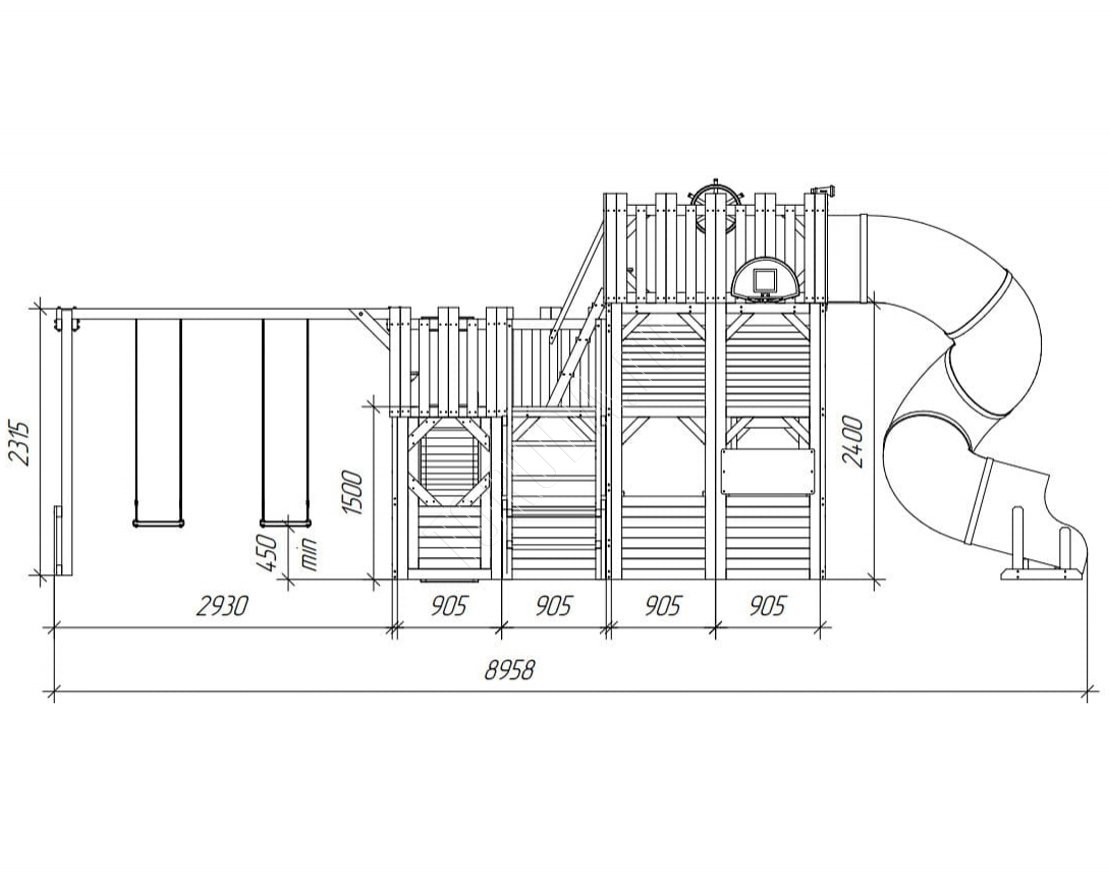 - Горка-труба с высоты платформы 2400 мм – 1 шт.