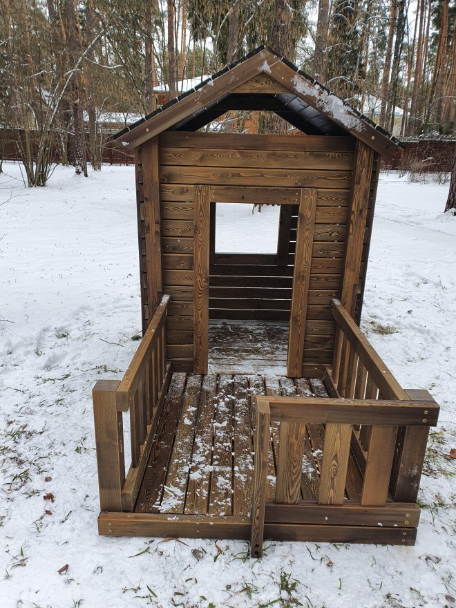Материалы: Каждая деревянная деталь детской игровой - спортивной конструкции состоит из древесины сибирской лиственницы: клееный и сращенный брус лиственницы сечением 90х90мм.; клееный и сращенный брус лиственницы сечением 80х40мм., доска – планкен из лиственницы сечением 90х20мм. (камерная сушка, влажность 8-16%). Каждая деревянная деталь обработана безопасным для детей покрытием в два слоя - восковой лазурью «ADLER» цвет «орех», со стороны торцов дополнительно запечатана мастикой. Рекомендуем обновлять покрытие деревянных элементов конструкции (при естественном износе покрытия, один раз в 2-3 года) или проводить реставрацию отдельных конструктивных элементов (при механическом повреждении), необходимо подобрать по цвету масло для террасной доски, предназначенное для эксплуатации на улице, любого производителя.