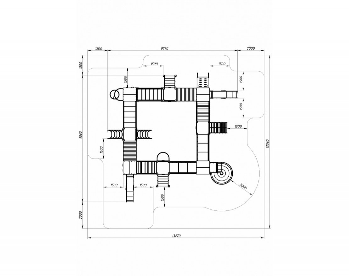 - Скат горки: H=1200 (металлический скат) / H=2000 (винтовой скат)