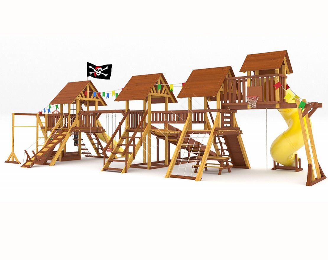 Площадка Галиот 16 обладает довольно широким функционалом (который по желанию можно легко расширить). А на качелях могут кататься даже родители! Детская площадка предназначена для дачи, коттеджа.