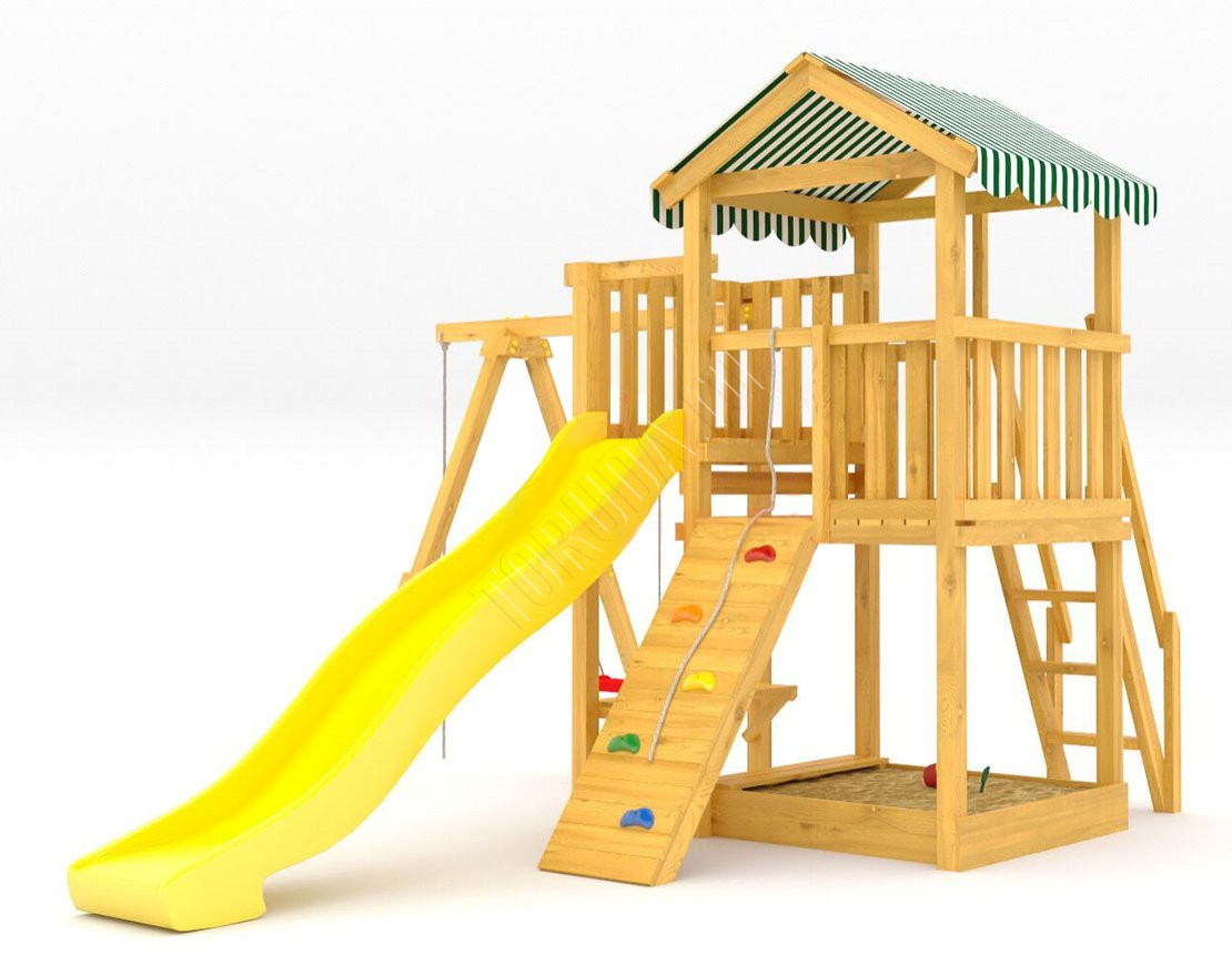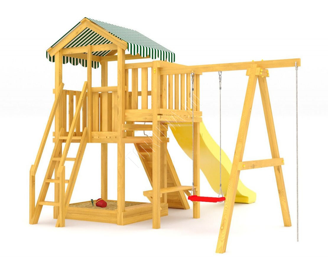 Детская игровая площадка Гарда 1 (Шоколад и Милк) - это универсальный детский игровой комплекс, спроектированный для использования в любую погоду. Площадка выполнена из натурального дерева, что подчеркивает её экологичность.