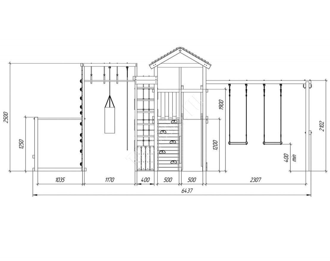 В основе натуральный материал – клееный брус 75х75 мм, изготовлена из безопасных материалов. Конструкция и элементы качельных подвесов разработаны и произведены согласно ГОСТ.