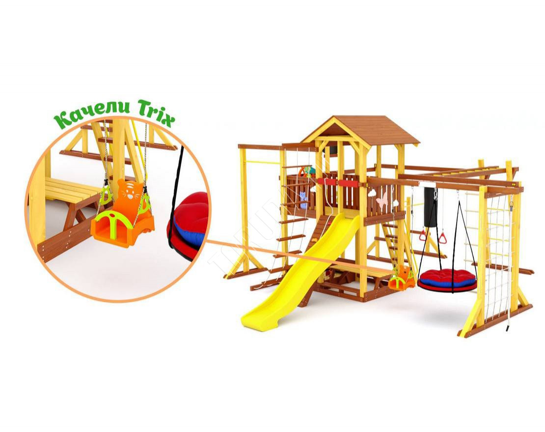 Площадка создана с акцентом на надёжность, качество и долговечность. Она оснащена современными и безопасными элементами, которые подходят для активных игр всех возрастов.