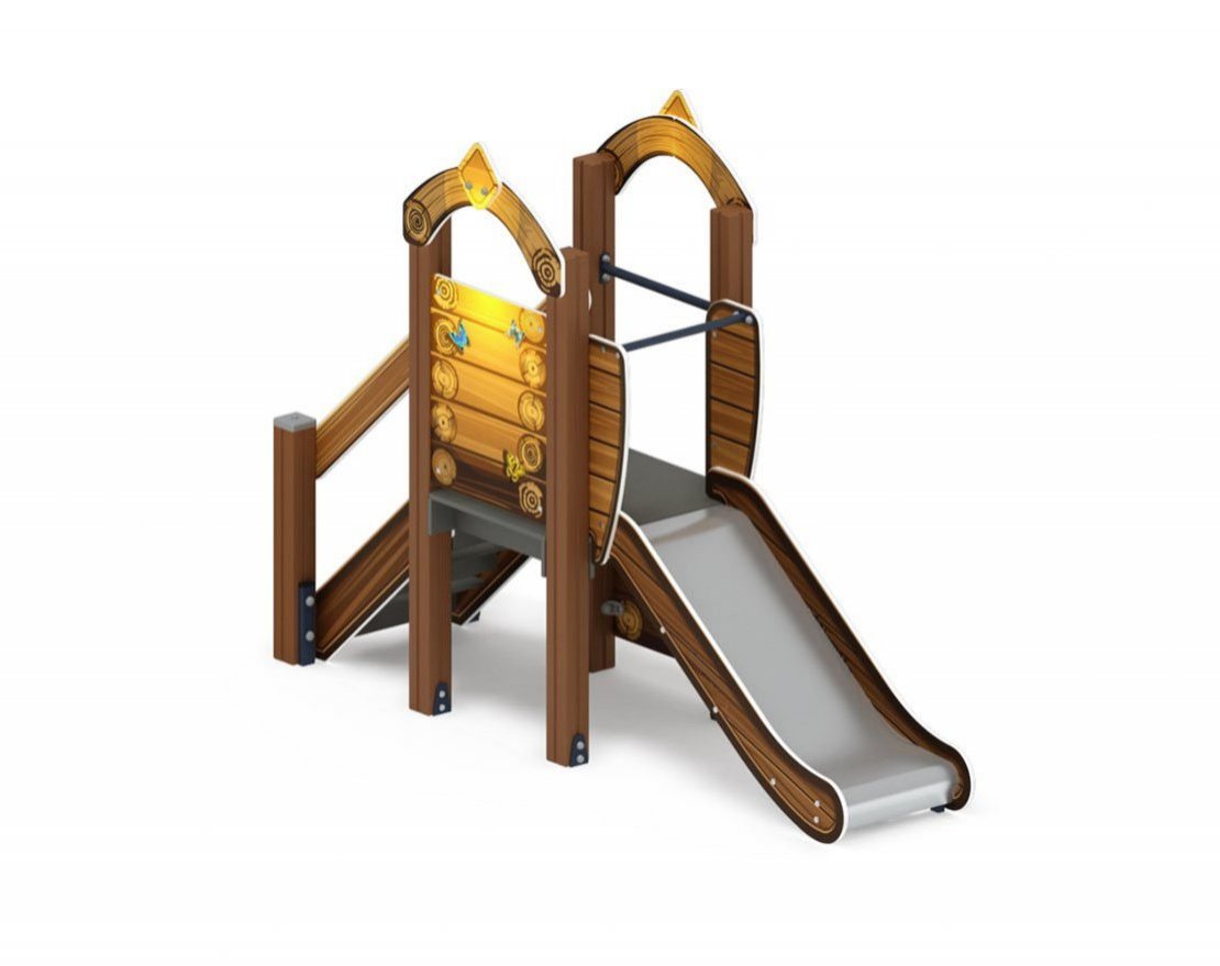 Скат горки шириной 530 мм, выполнен из нержавеющей стали t 1,5 мм, - цельного листа, борта выполнены из влагостойкой фанеры толщиной 24 мм, кромки фанеры тщательно шлифованы, борта окрашены при помощи УФ печати, принт Эко. Ограждения стартового участка горки, выполнены из влагостойкой фанеры толщиной 18 мм, фанера окрашена при помощи УФ печати. Опорный каркас горки выполнен из профиля 40х25 мм и труб диаметром 32 мм (металл имеет плавные радиусы и тщательную обработку швов, покрыт порошковой краской). Габарит горки 530х1280х750(h) мм. Горка поставляется в собранном виде.