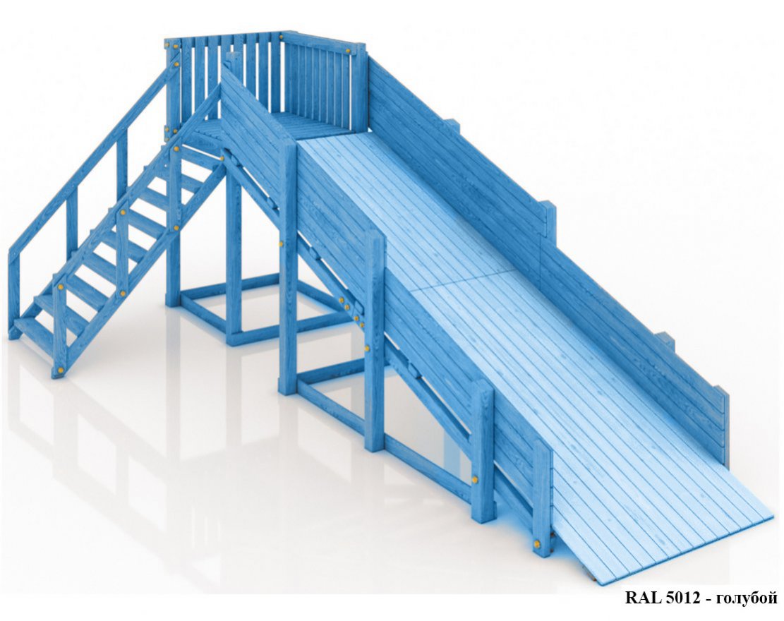 Зимняя горка Морозный простор 4 изготовлена в соответствии с ГОСТ Р 52168-2012. Опоры и несущие элементы изделия изготовлены из клееного бруса карельской сосны 90х90мм, 60х90мм, доска 45х90мм, 45х140мм, другие перекрытия 20х90мм доска, ограждение и иные элементы из массива сосны. Везде используется сухая доска.