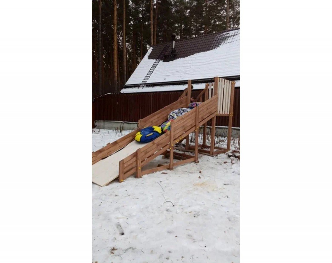На данной горке можно кататься на ватрушках размером до 1200мм, ширина ската 1250мм, что позволяет скатываться с данной горки.