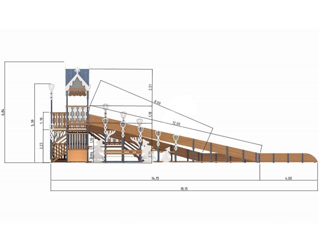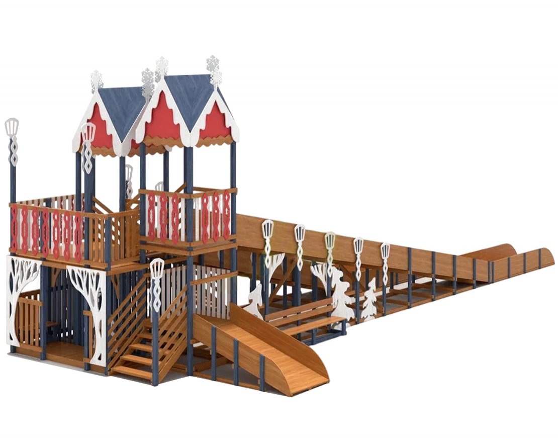 Эта горка — идеальное воплощение зимней сказки, которое станет украшением парка или вашего участка в морозное время года. Удивительный дизайн с множеством декоративных элементов создадут атмосферу настоящего зимнего волшебства.