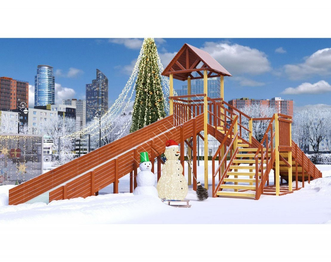 Зимняя горка имеет Декларацию о соответствии ТР ЕАЭС 038 и может быть использована в общественных местах.