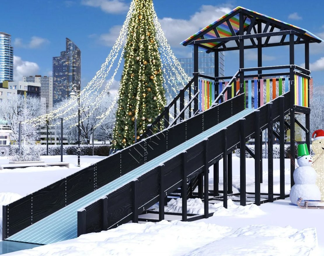 Зимняя горка имеет Декларацию о соответствии ТР ЕАЭС 038/2016 и может быть использована в общественных местах.