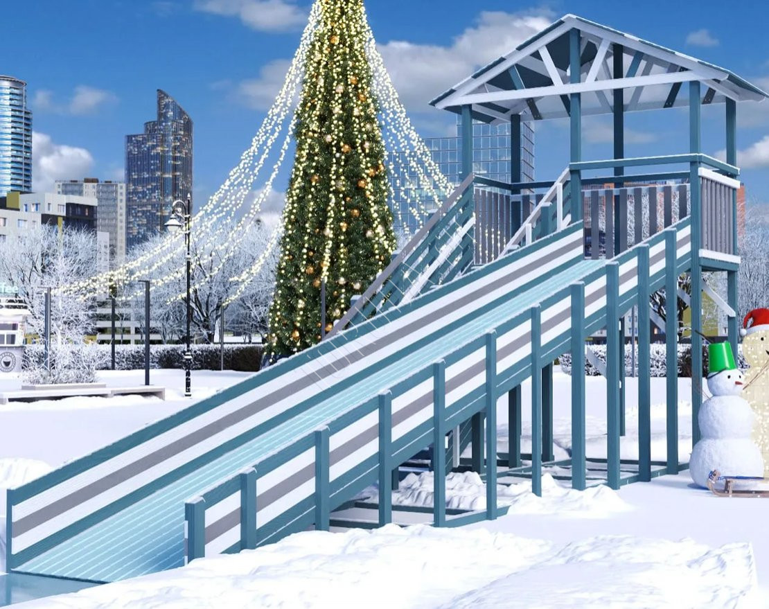 Зимняя горка имеет Декларацию о соответствии ТР ЕАЭС 038/2016 и может быть использована в общественных местах.