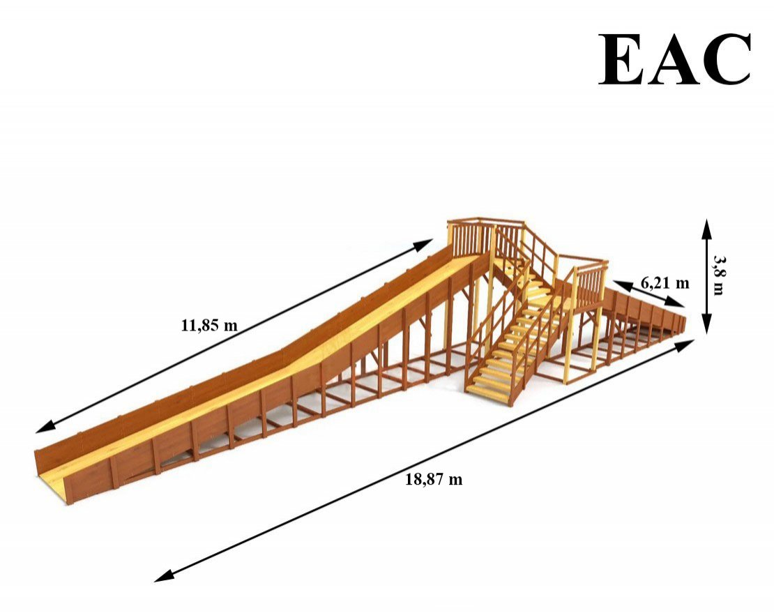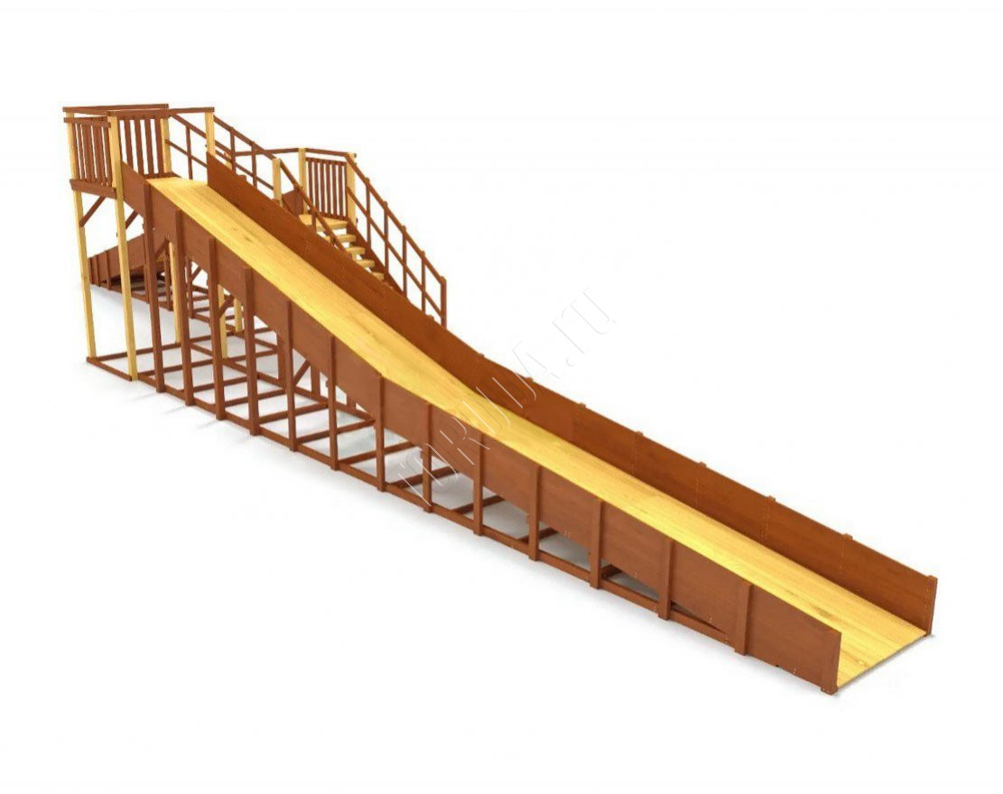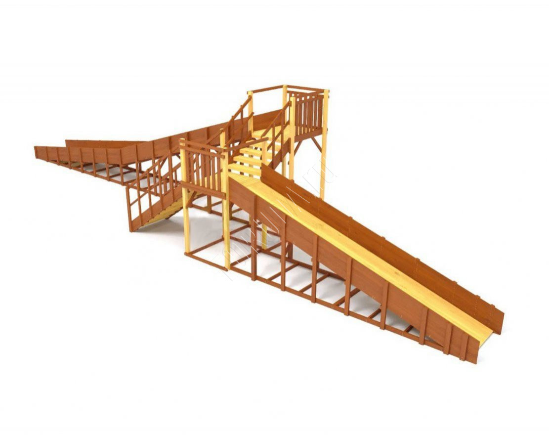 Просторный комплекс с двумя длинными скатами и удобными лестницами. Модель рассчитана на большую компанию детей, которые смогут кататься одновременно, не мешая друг другу.