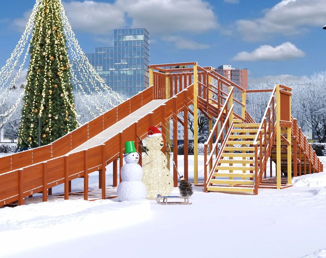Зимняя горка имеет Декларацию о соответствии ТР ЕАЭС 038 и может быть использована в общественных местах.