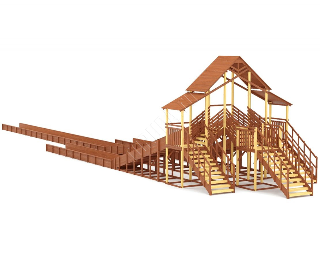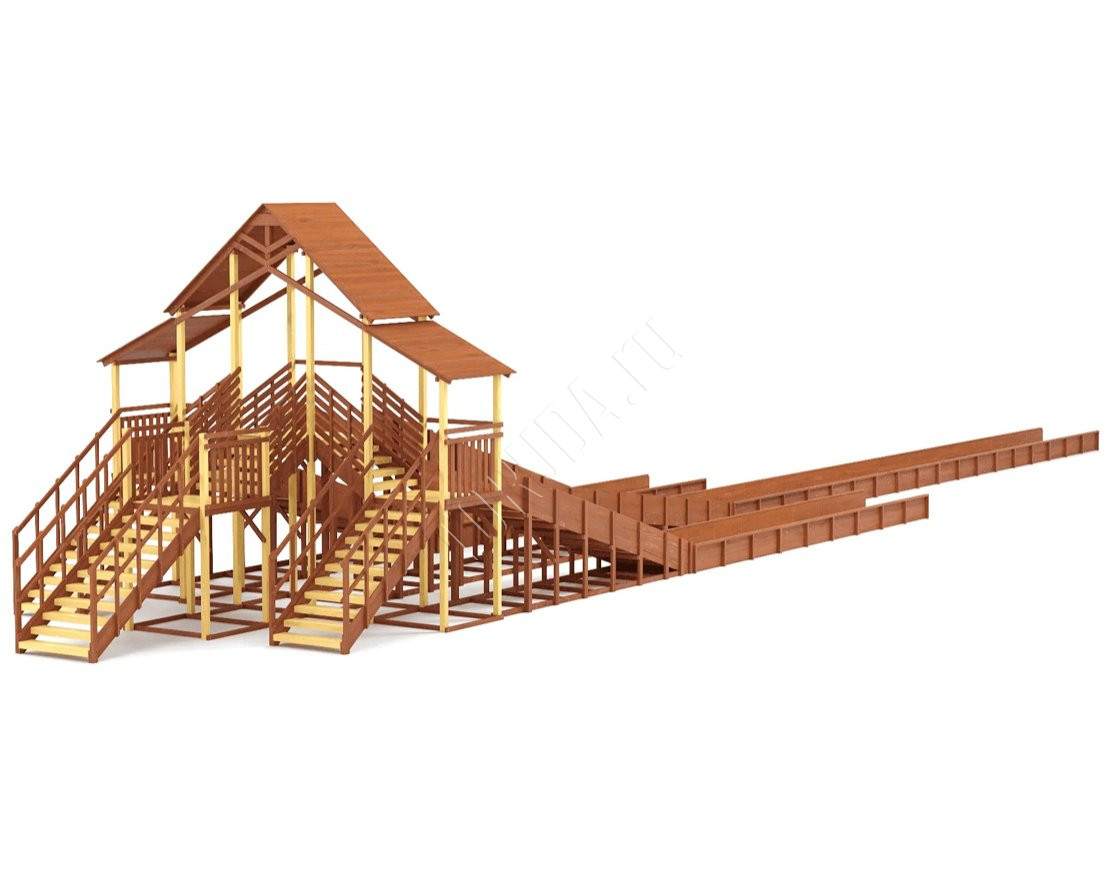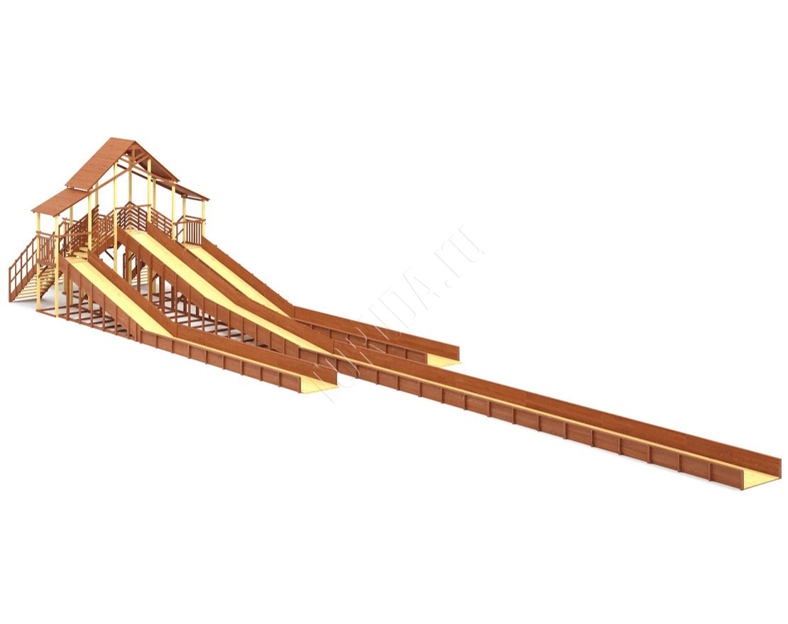 Три мощных ската длиной до 30 метров, которые превращают любую площадку в центр зимнего веселья! Прочная двухуровневая конструкция, широкие лестницы и высокие ограждения делают катание максимально безопасным.