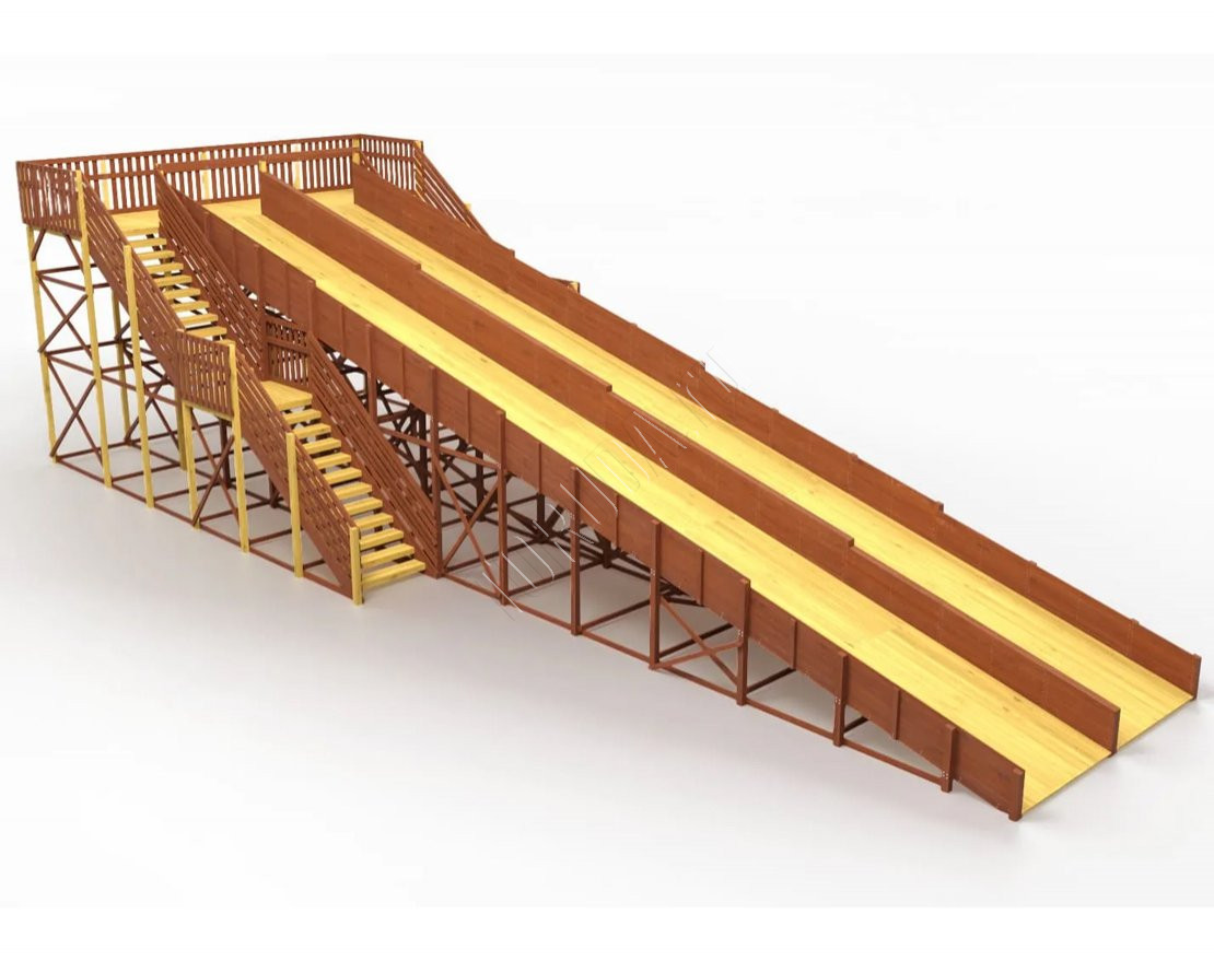 Два ската длиной по 18 метров и широкие лестницы позволяют одновременно кататься целой компании детей.
