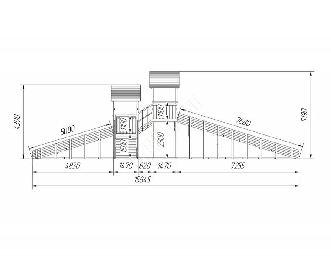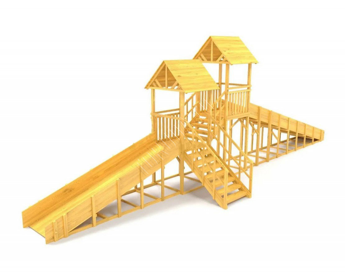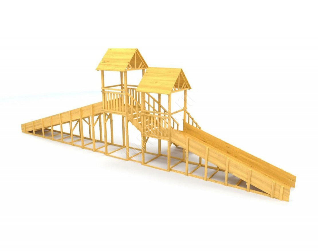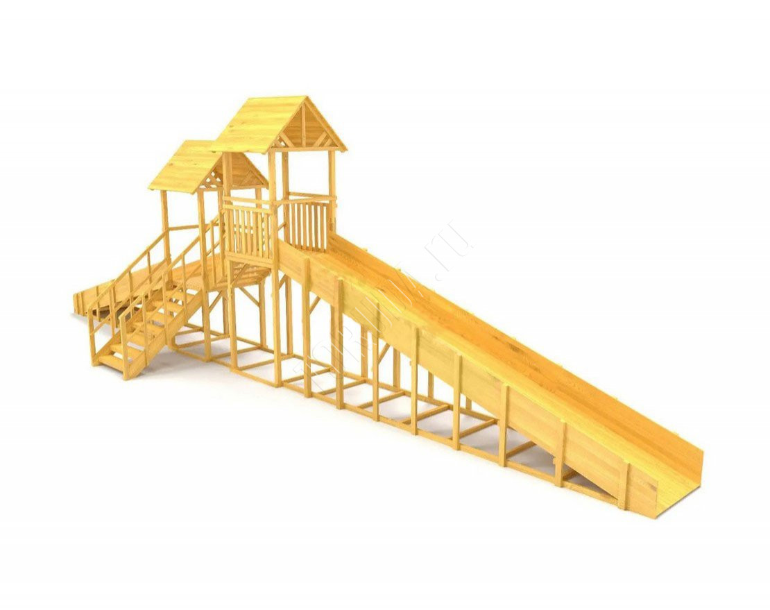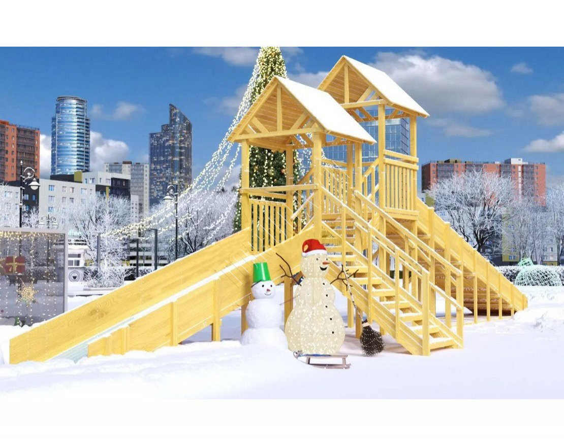 Просторный игровой комплекс для детей разных возрастов. Две башни с крышей, широкие лестницы и два длинных ската превращают игру в настоящее зимнее приключение.