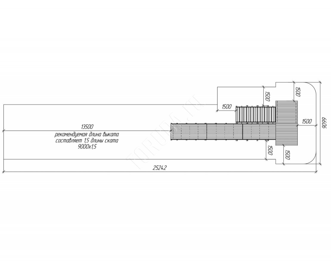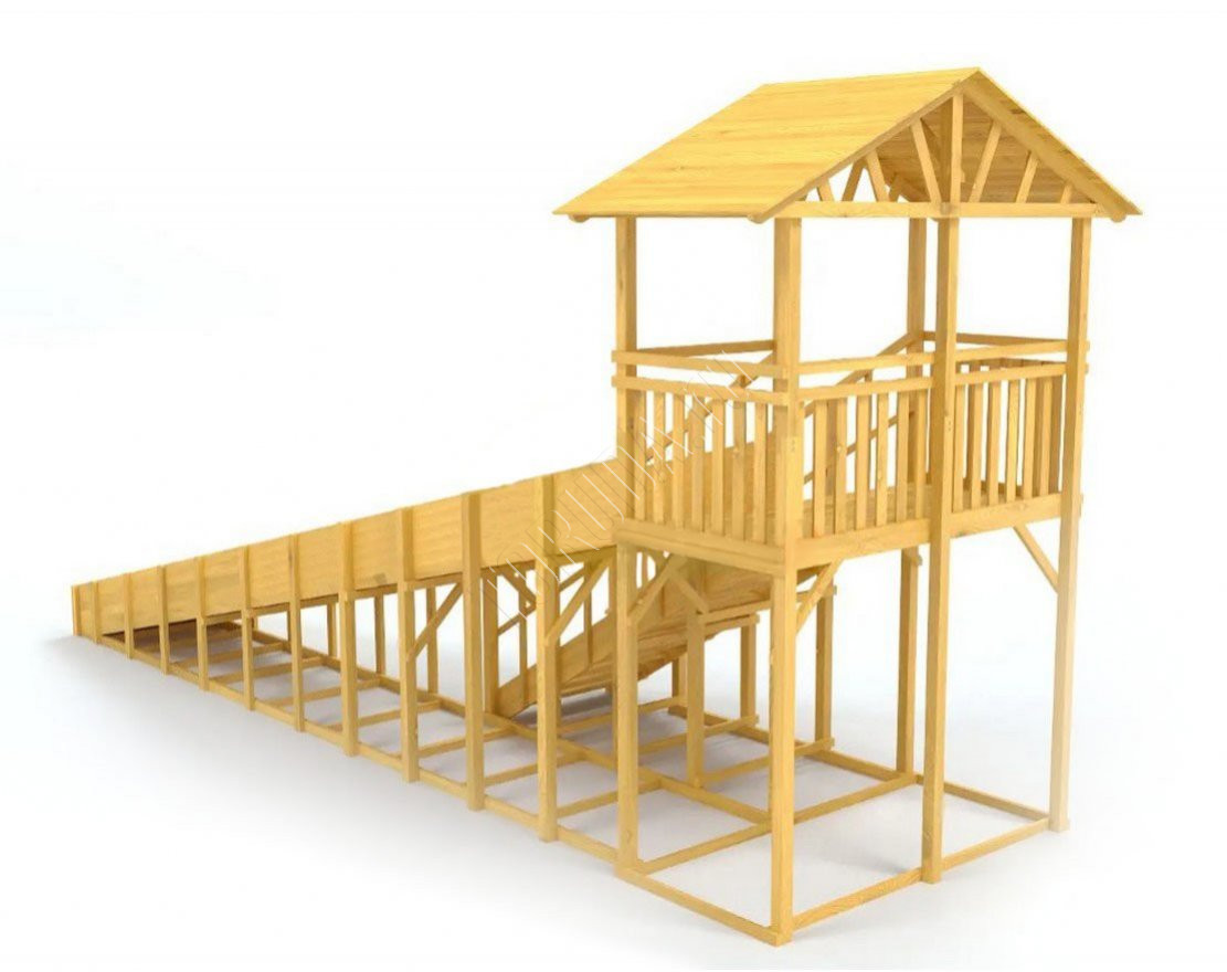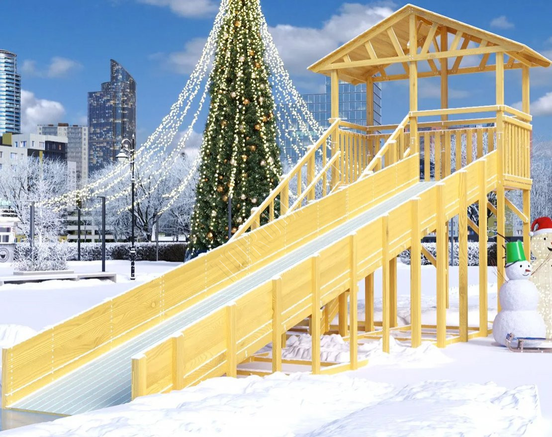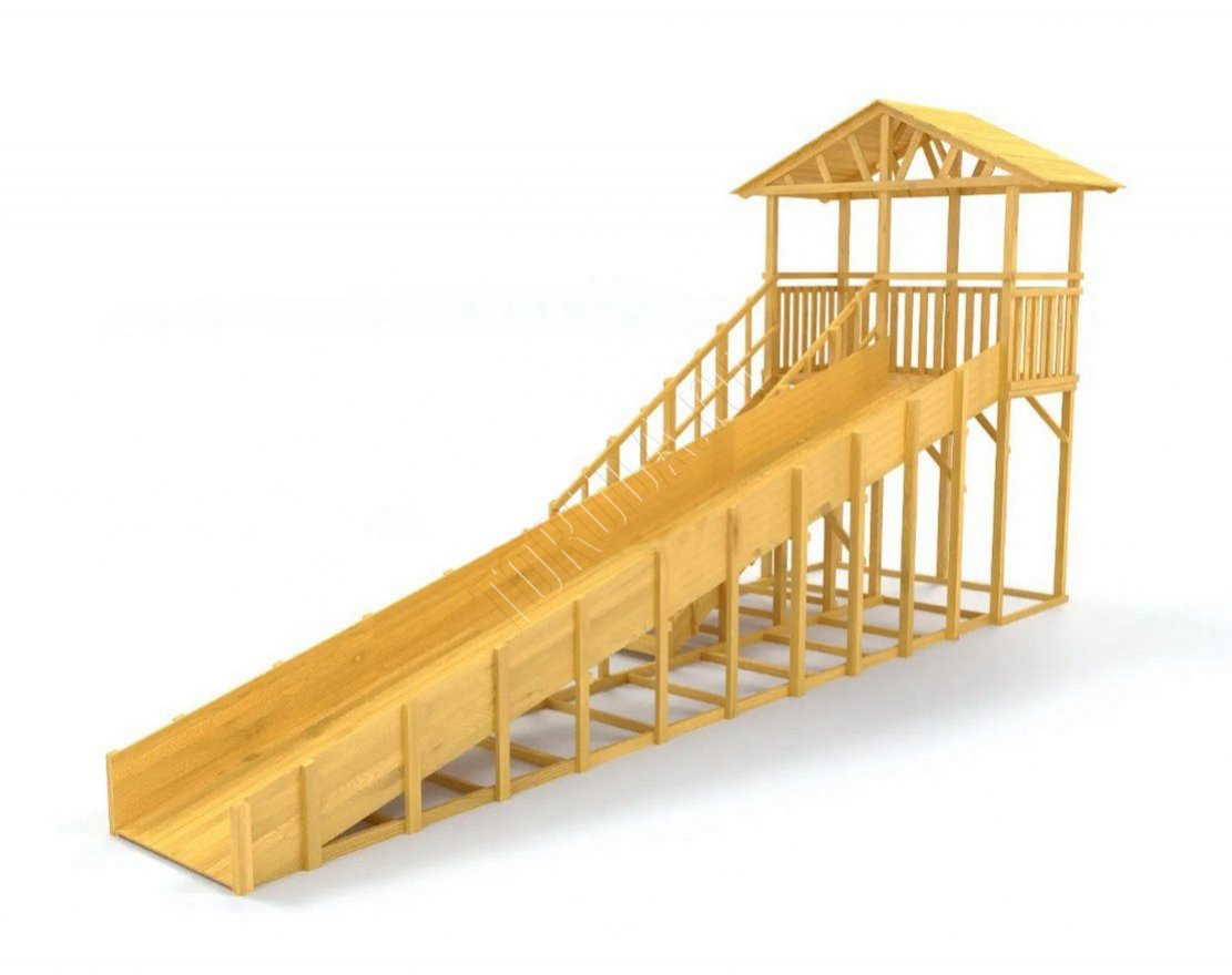 Универсальная деревянная зимняя горка TORUDA Север wood-8/1 – модель с самым длинным скатом из зимней линейки без покраски (9 м).