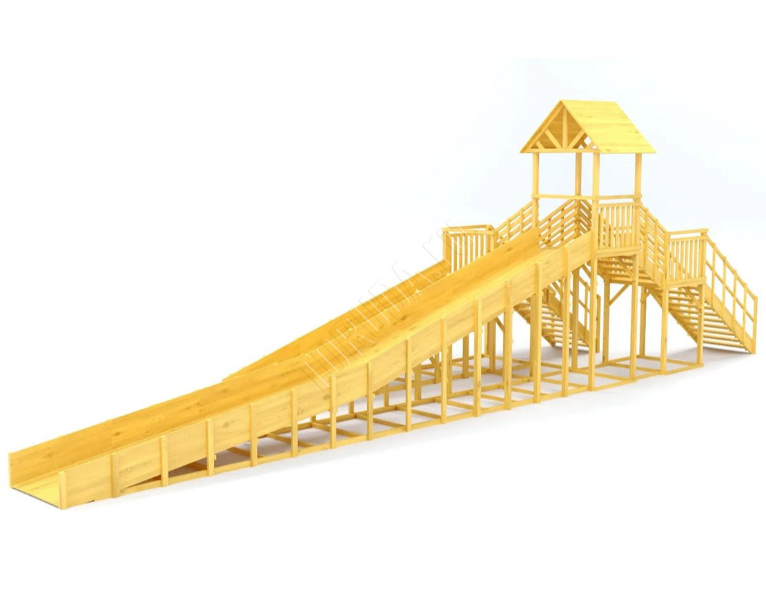 Многоуровневая зимняя горка с двумя длинными скатами (6,21 м и 11,85 м). Идеально подходит для активных игр, катания на тюбингах и ледянках. Благодаря прочной конструкции и широкой платформе, эта модель станет центром зимних развлечений во дворе, парке или общественном пространстве.