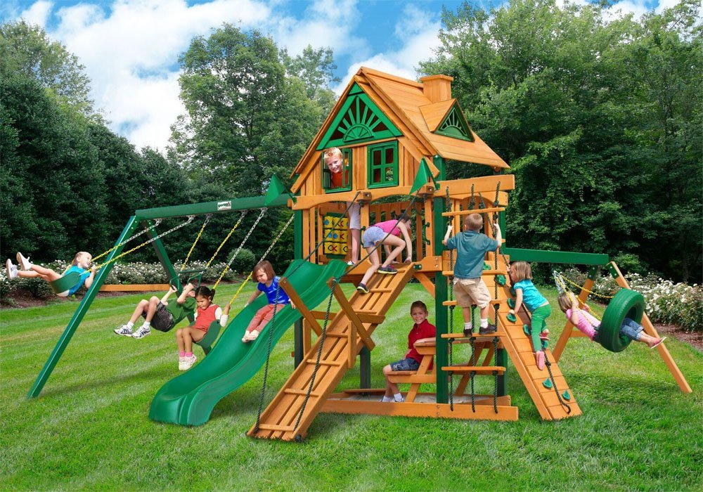 Для удобства и безопасности детей устанавливайте площадку на ровную поверхность, чтобы с каждой стороны было по 1,8 метра свободного пространства.