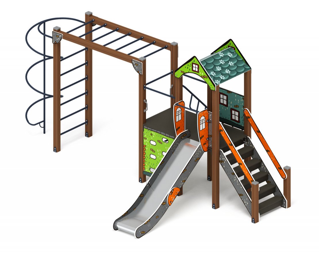 • Особенности комплектации: шведская стенка, рукоход, горка, скалодром, лестница, кольцевой лаз