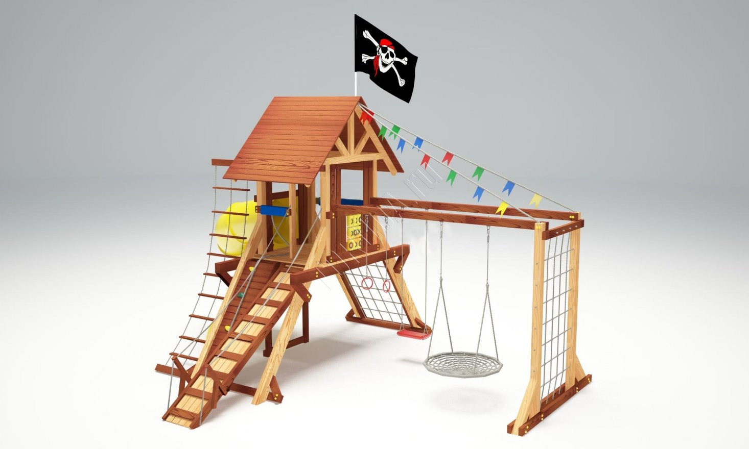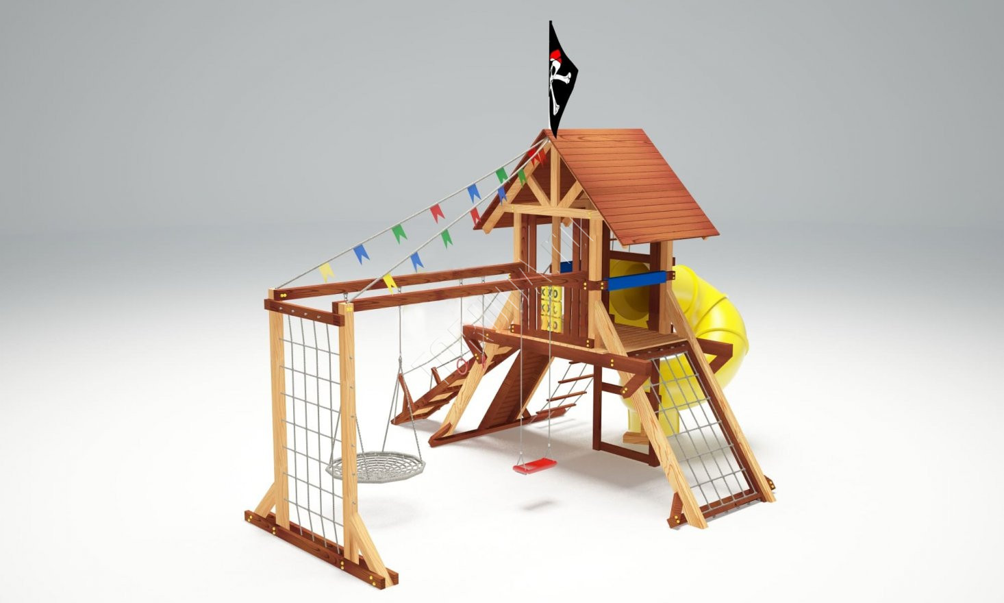 Площадка Галиот 4 обладает довольно широким функционалом (который по желанию можно легко расширить). А на качелях могут кататься даже родители! Детская площадка предназначена для дачи, коттеджа.
