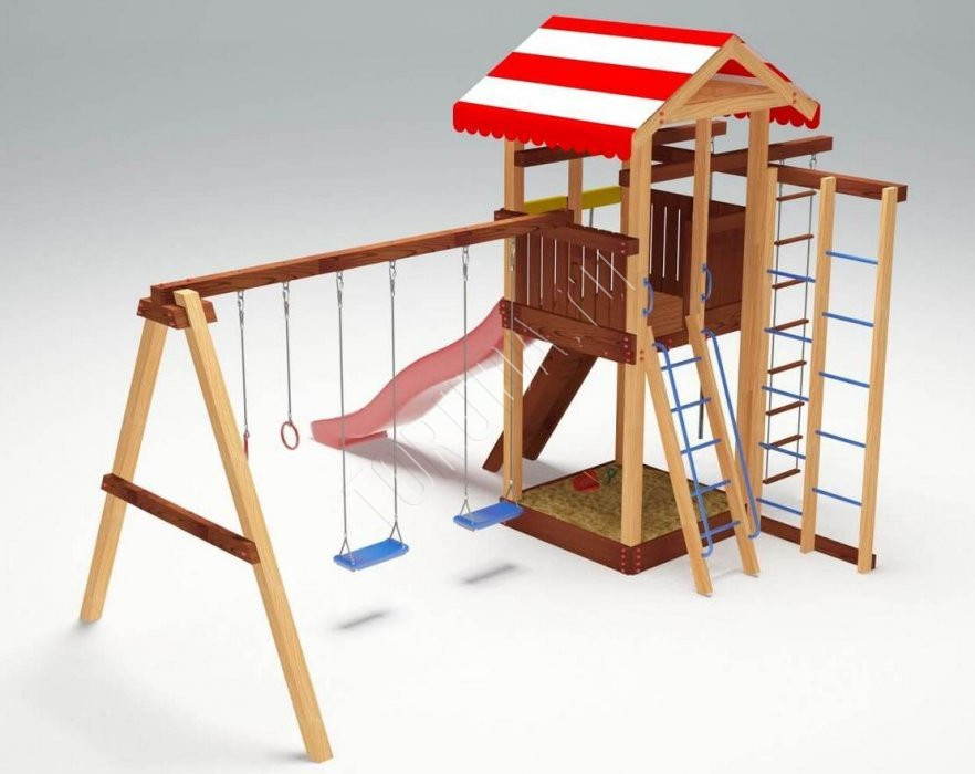 Площадка Парус 3 обладает довольно широким функционалом (который по желанию можно легко расширить). Детская площадка предназначена для дачи, коттеджа.