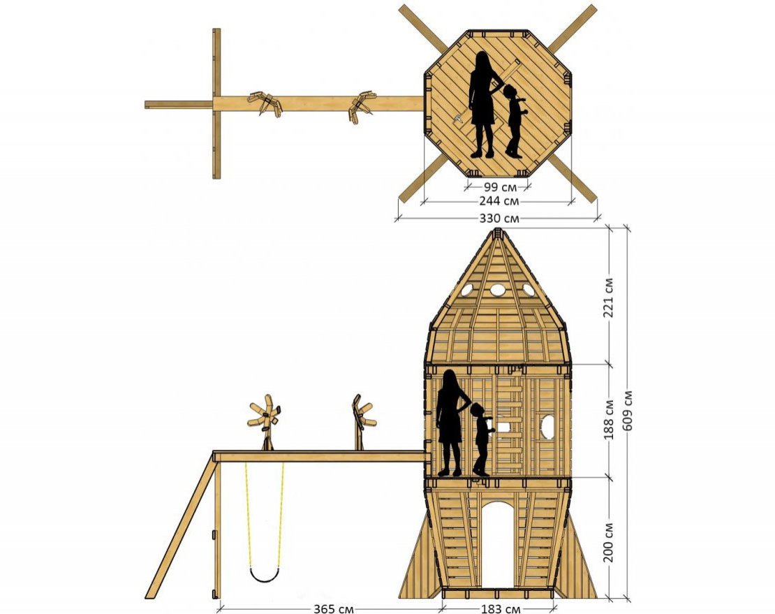 Игровой комплекс Ракета - это идеальная деревянная игровая конструкция для детей, которые любят приключения во внеземном мире. С тремя отдельными уровнями, соединенными лестницами, и высотой 6 метров, дети без проблем смогут представить, что они астронавты на пути к Луне, Марсу или черной дыре!