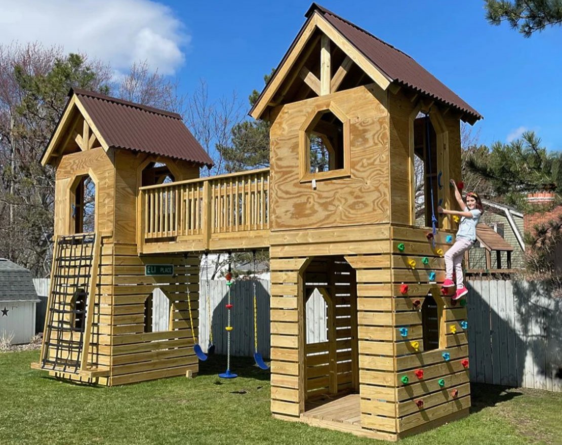 Состоящий из двух одинаковых башен, соединенных мостом, чтобы обеспечить детям собственное пространство, когда им не хочется делиться.
