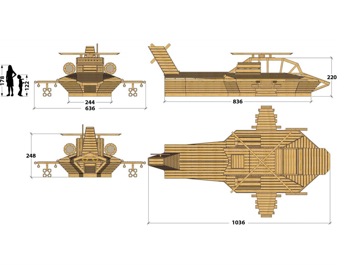Каркас изделия изготовлен из сибирской лиственницы. Все элементы тщательно отшлифованы и покрыты двумя слоями немецкой краски Biofa. Для крепления элементов используется уникальная скрытая система монтажа Camo, которая делает поверхность полностью безопасной и эстетичной.
