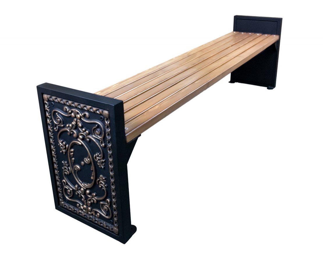 Изящная банкетка «Ампир» станет украшением городского сада или загородного участка. Сидение из бруса лиственницы 30х60 миллиметров удобно для отдыха.