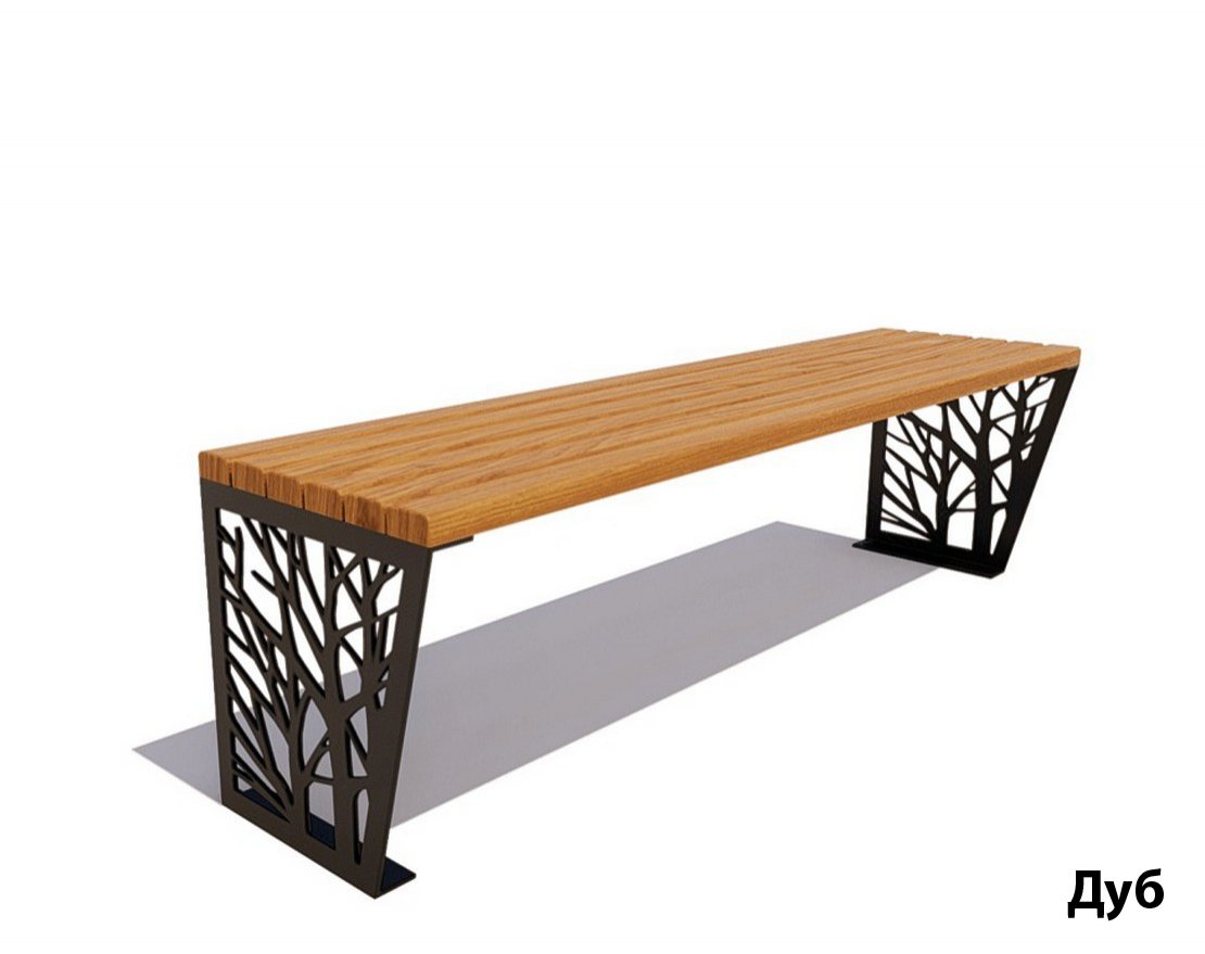 Банкетка «Роща» станет украшением любого парка или сквера. Стальные боковины изделия украшены рисунками, сделанными лазером, в виде веток деревьев, что позволяет гармонично вписаться в интерьер.