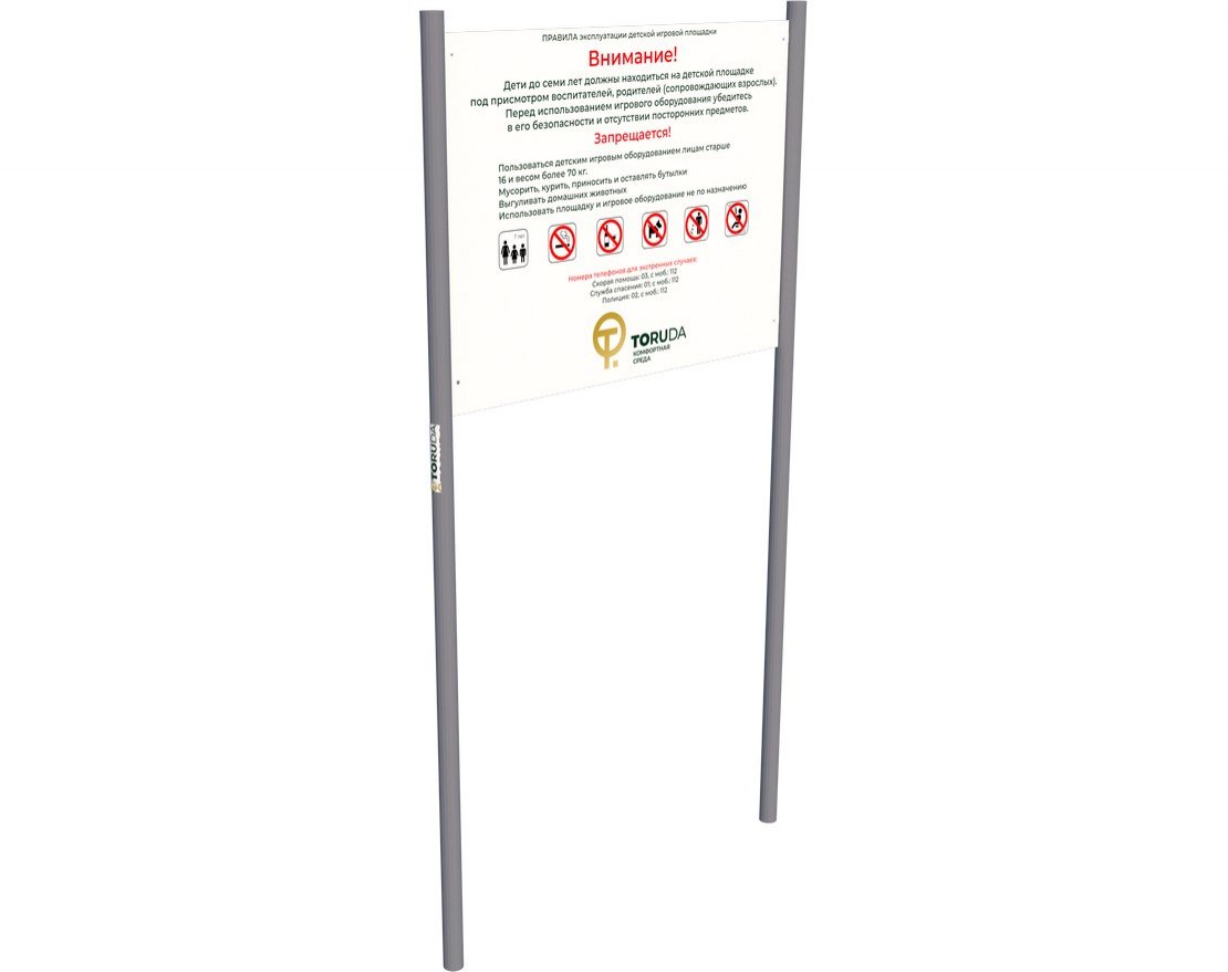 Информационный стенд TORUDA конструктивно представляет собой металлический каркас, с установленным на него информационным табло. Стенд цементируется, конструкция устойчива к воздействию холодов и влаги. Для экономии пространства, основания стенда TORUDA представляет собой сдвоенную трубу, кроме экономии места, делает установку стенда более быстрой.