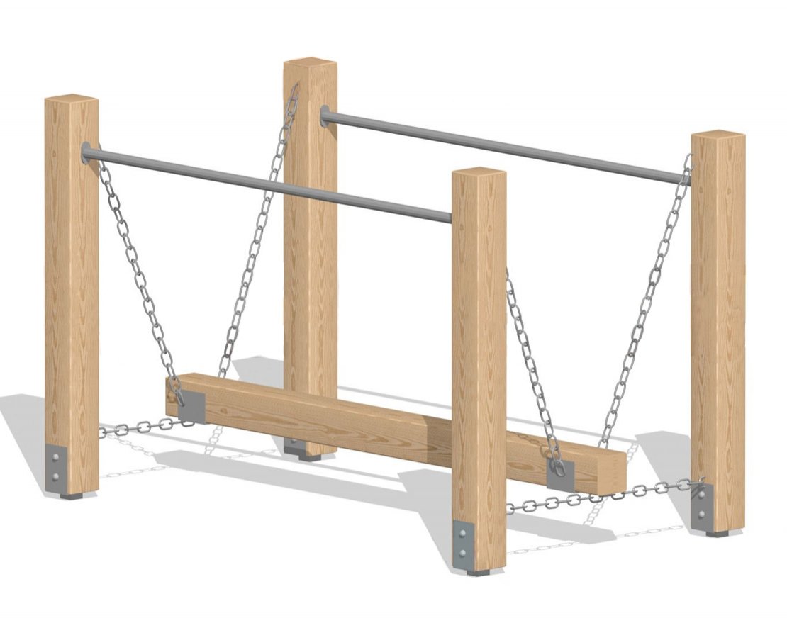 Спортивный элемент предназначен для детей младшего и среднего школьного возраста. Это своеобразные качели, которые ребёнок может привести в движение самостоятельно, задействуя вес своего тела, отталкиваясь руками и ногами.