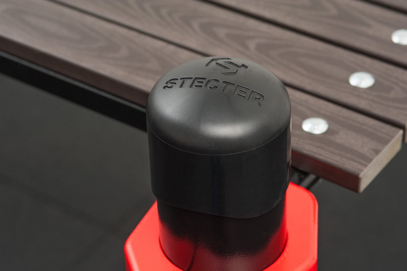 Опорные столбы высотой 830 миллиметров изготавливаются из окрашенных порошковыми составами стальных круглых труб, устойчивых к коррозии и выдерживающих большие нагрузки.