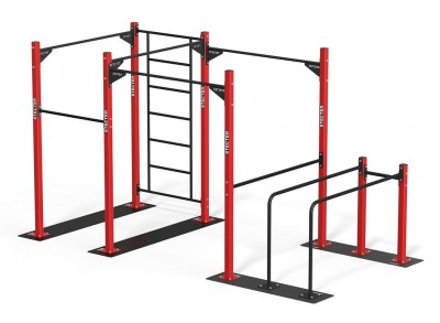 Спортивный комплекс представляет собой сборную металлическую конструкцию, состоящую из восьми опорных столбов, изготовленных из трубы квадратного профиля, с приварными площадками для крепления к пластинам основания, одной перекладины длиной L=1120 мм., четырех перекладин длиной L=1816 мм., с возможностью установки на различной высоте (изменение положения высоты перекладин производится за счет дополнительно предусмотренных отверстий в опорных столбах), а так же состоит из сдвоенных брусьев и шведской стенки. Монтаж элементов спортивного комплекса осуществляется с помощью болтового соединения. К каждому опорному столбу по два болтовых соединения на один элемент комплекса. Разборная конструкция спортивного комплекса имеет высокую прочность и позволяет легко производить её монтаж и демонтаж. Все элементы покрыты атмосферостойкой порошковой краской, нанесенной методом электростатического напыления с последующим обжигом в печи.